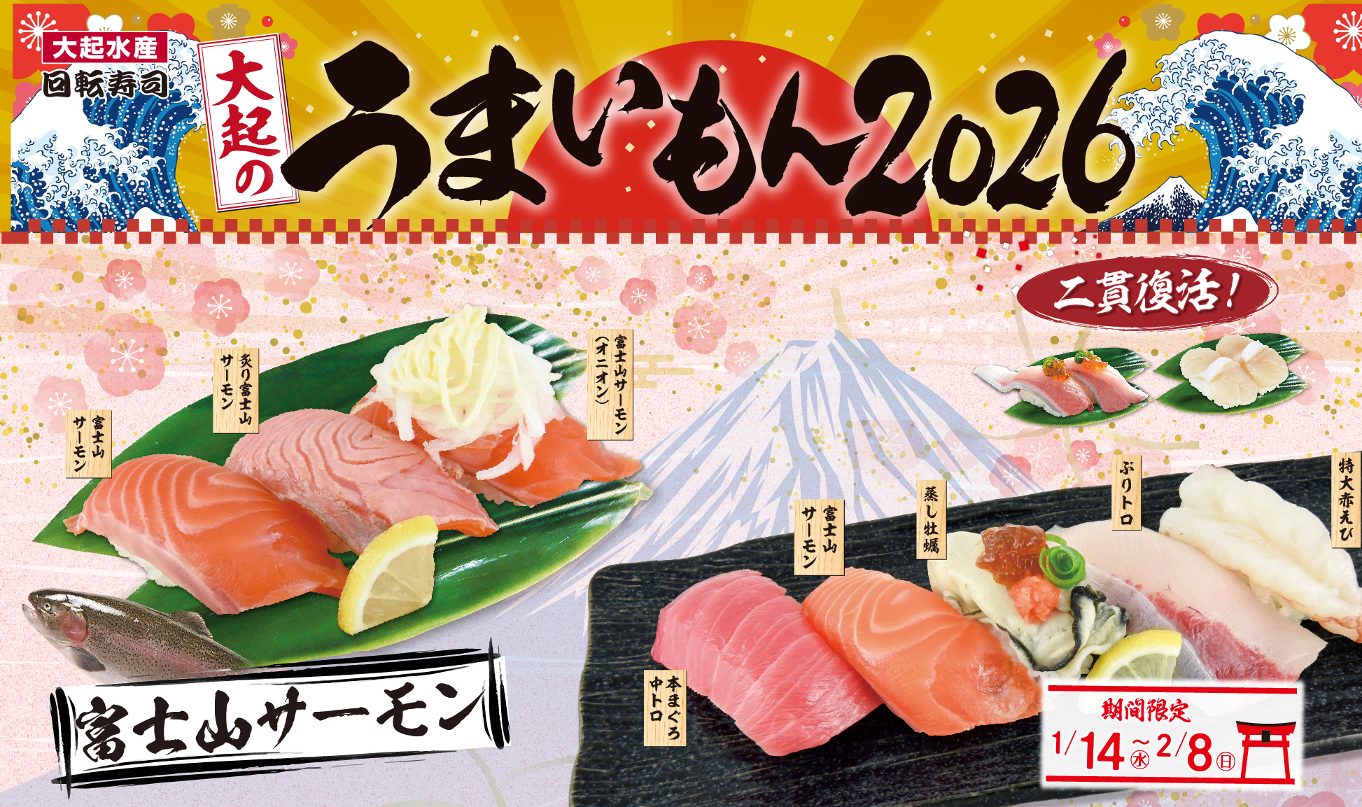 【大起水産回転寿司京橋店】1/19㊊~1/31㊏まで!仕事帰りに最適!ちょい呑み寿司セット