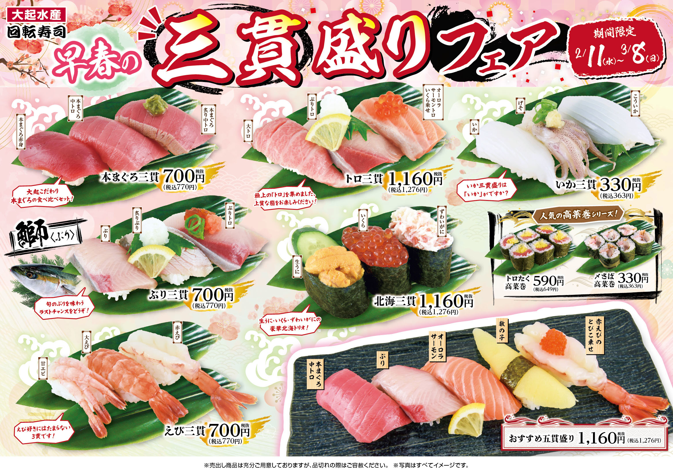 【2/11㊌~3/8㊐まで】期間限定フェア「早春の三貫盛りフェア」を開催!