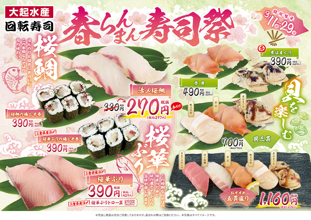 【3/11㊌~3/29㊐まで】期間限定フェア「春らんまん寿司祭」を開催!