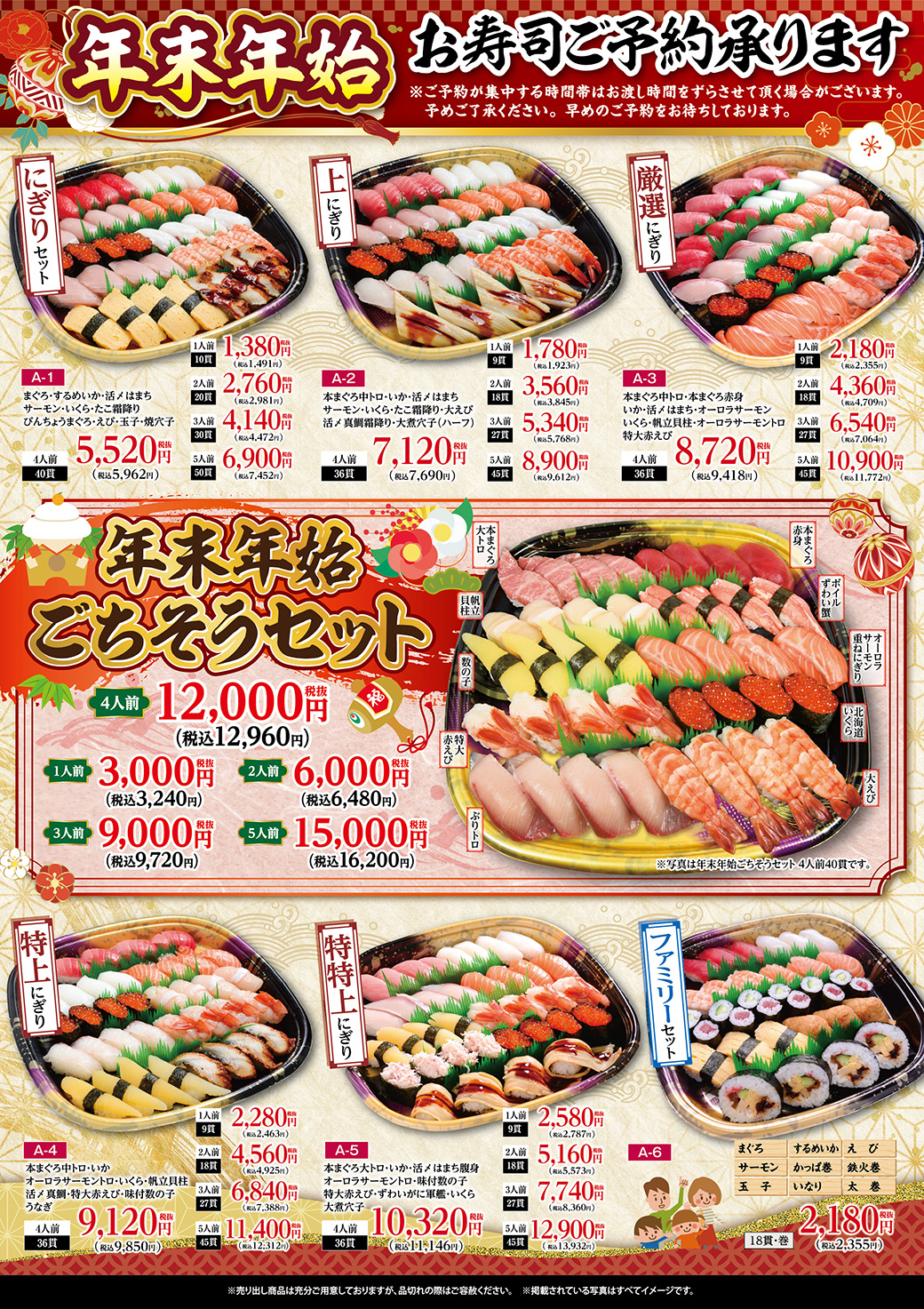 赤身、中トロ、大トロ、カマトロがそれぞれおトクに!