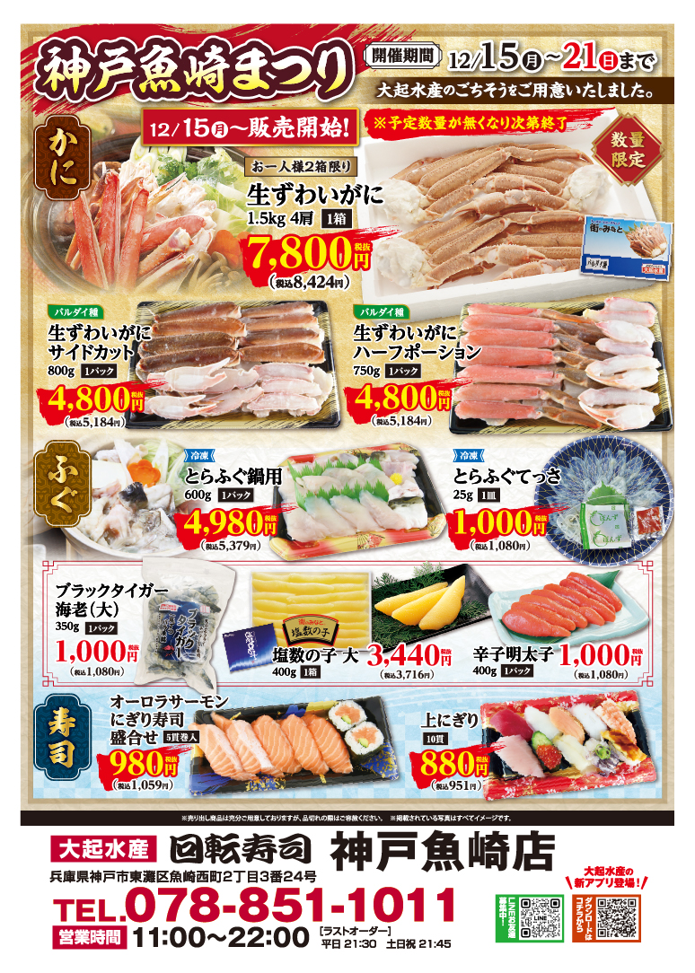 12/15㊊~12/21㊐の7日間、『魚崎まつり 第2弾』を開催いたします。